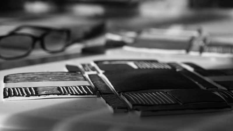 Her tiles, handmade using porcelain paper clay represent experiments in geometric shapes and abstract decoration employing sgraffito technique, slip inlay and hand painted designs using underglazes.