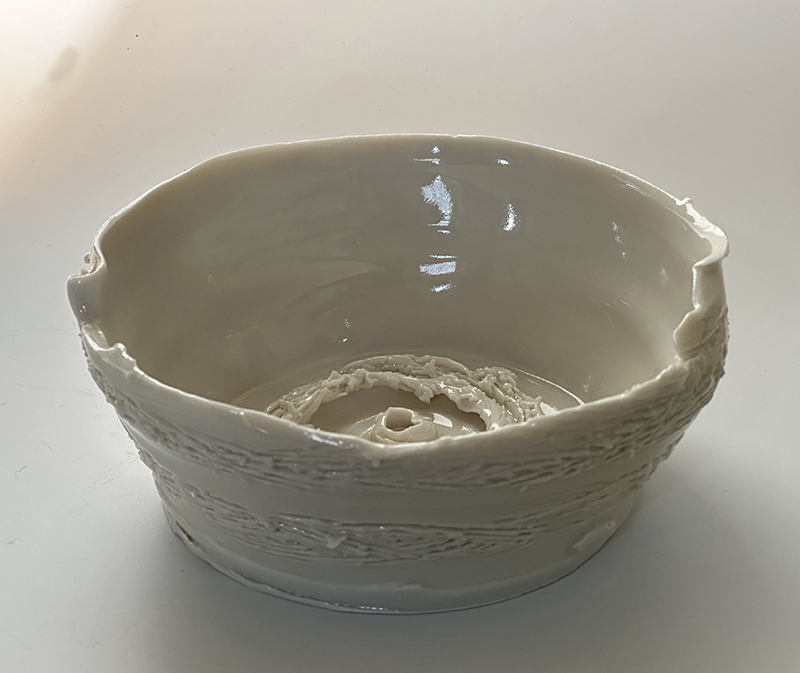“Inspired by the wonderful colours, textures and ever changing movement of the sea and shoreline on and around the Isle of Mull I’ve been creating some new seascape bowls – in porcelain.”