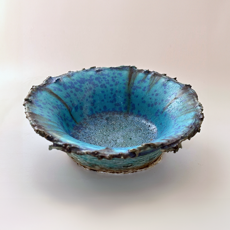 Once successfully bisc fired Teresa glazes the bowls with a range of different glazes and oxides to further enhance their forms.